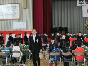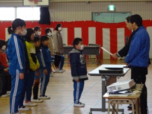 今年度,退職・転出される先生方とのお別れの式を行いました。子どもたちは名残を惜しみながら,お別れの言葉や花束をわたしました。また退職・転出される先生方の話を真剣に聞いていました。退職・転出される先生方,ありがとうございました。