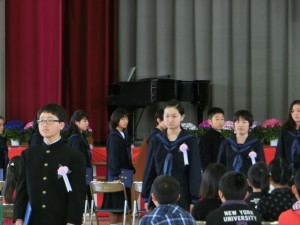 今日は,平成26年度修了式がありました。校長先生からは,1年間夢と希望に向かってよくがんばりましたと,お話がありました。 その後2年間お世話になった。NLTのリチャード・チャン先生のお別れ会が行われました。 リチャード先生から「先生の仕事をすることは夢だったので,楽しくできて,とっても嬉しいです。」とお話しがありました。 新しいところでもがんばってほしいです。