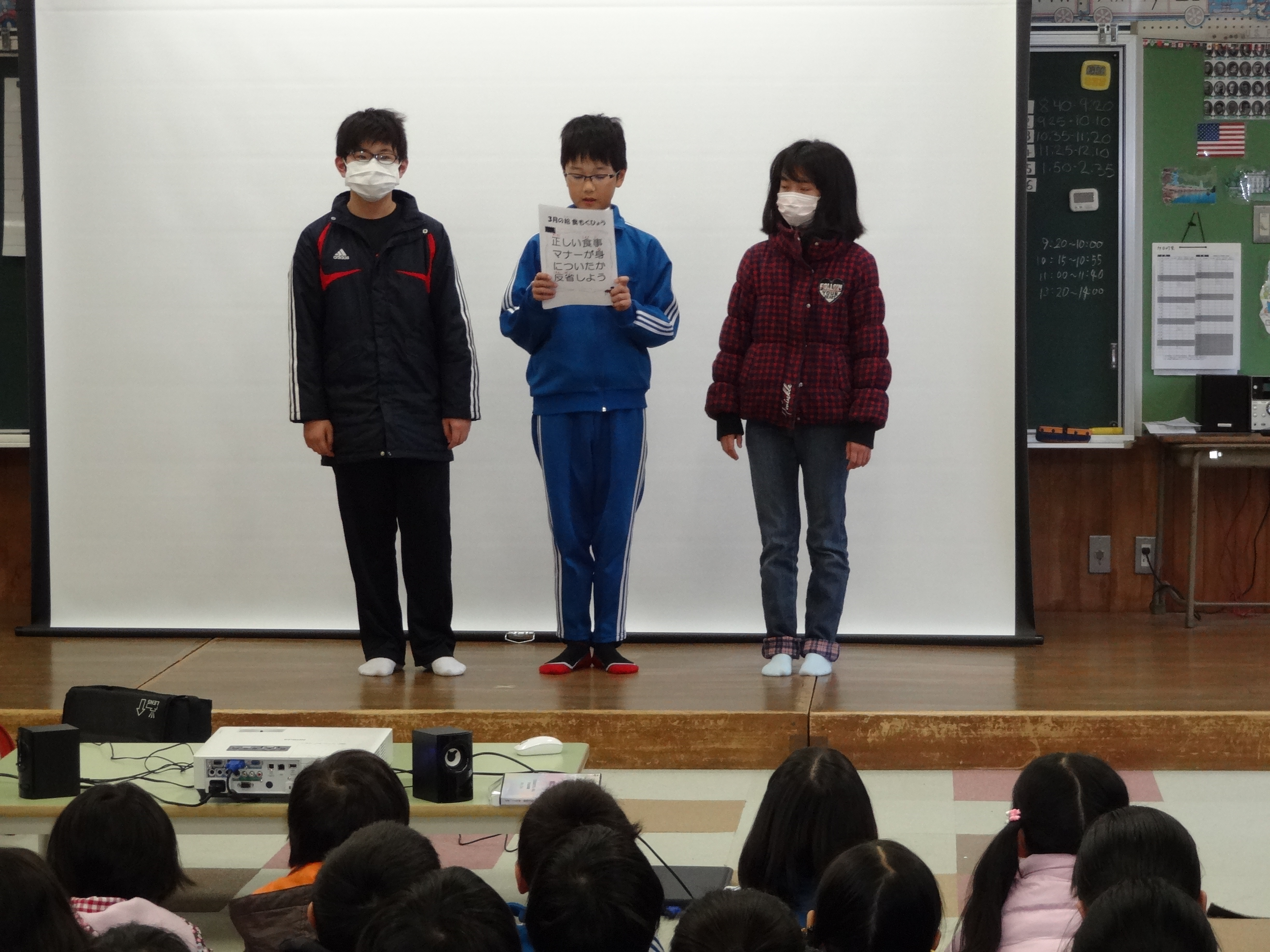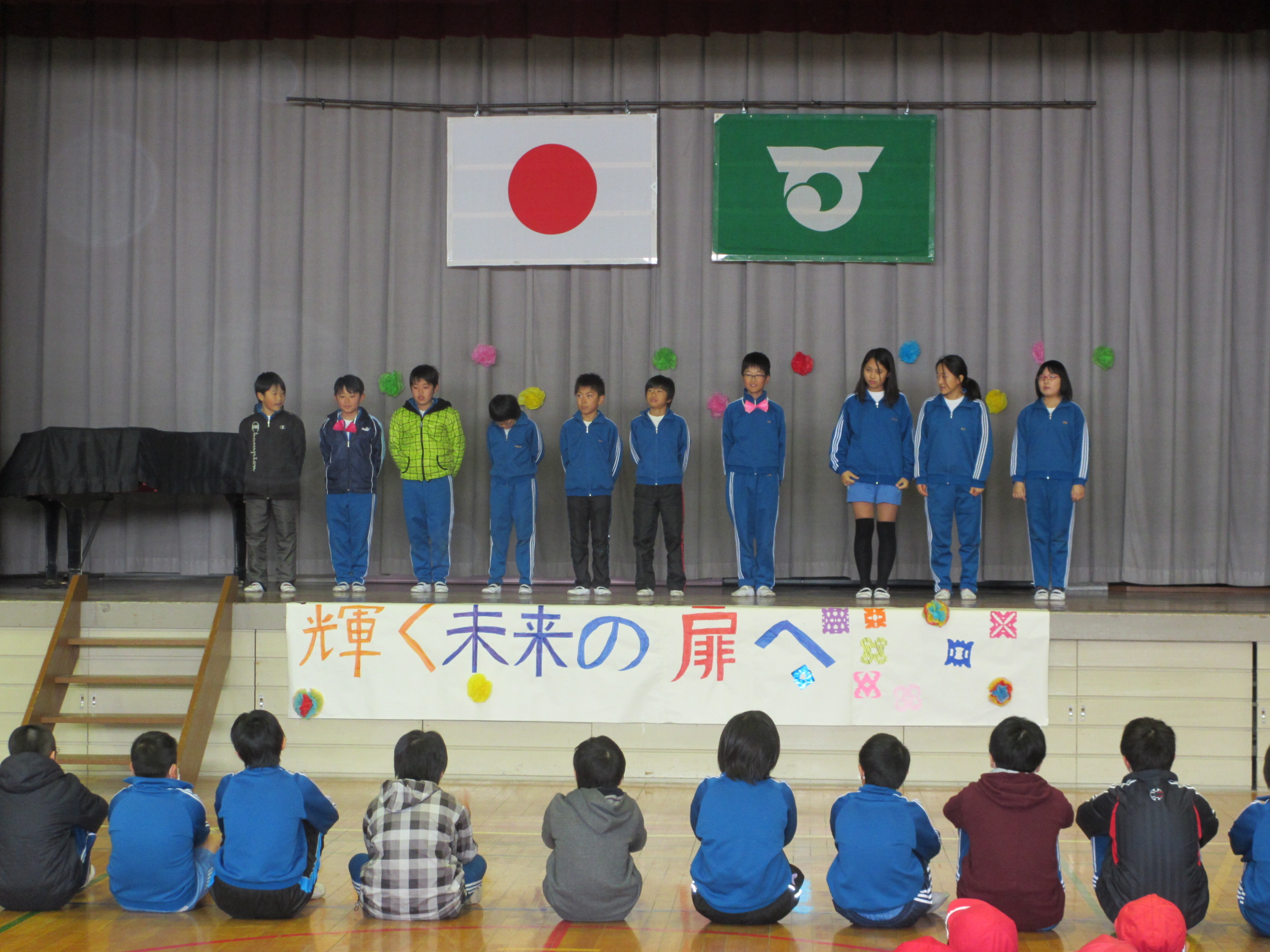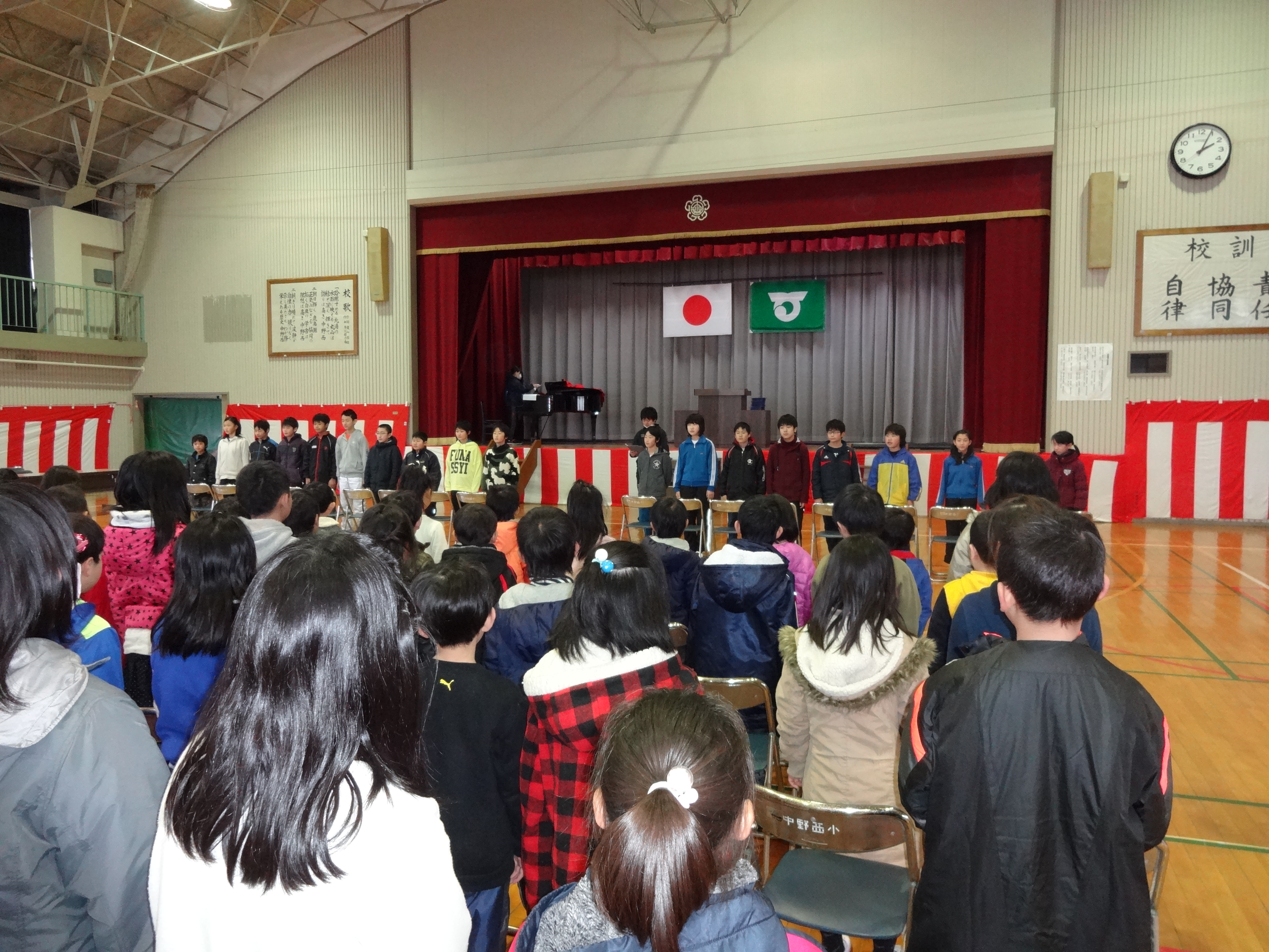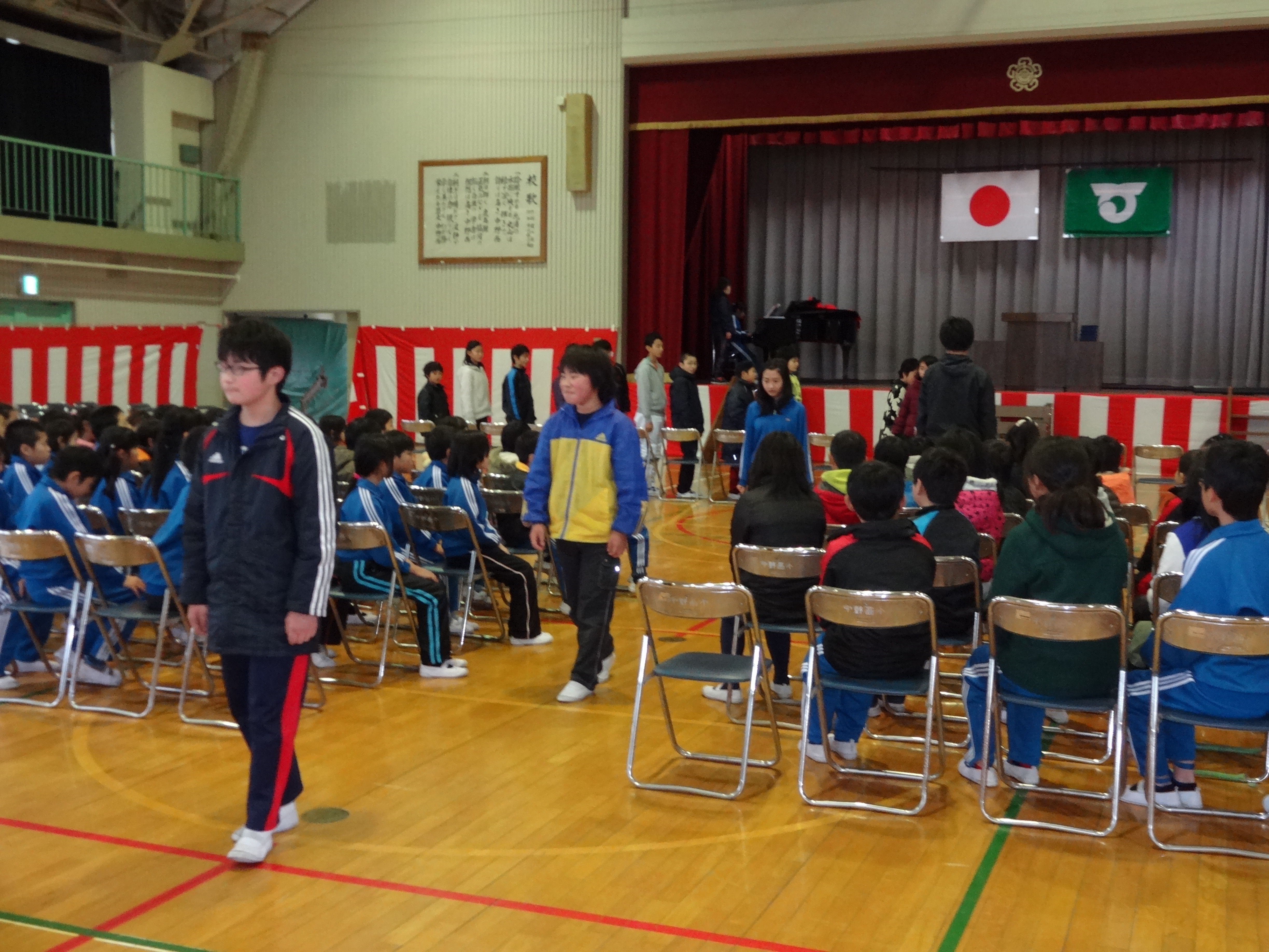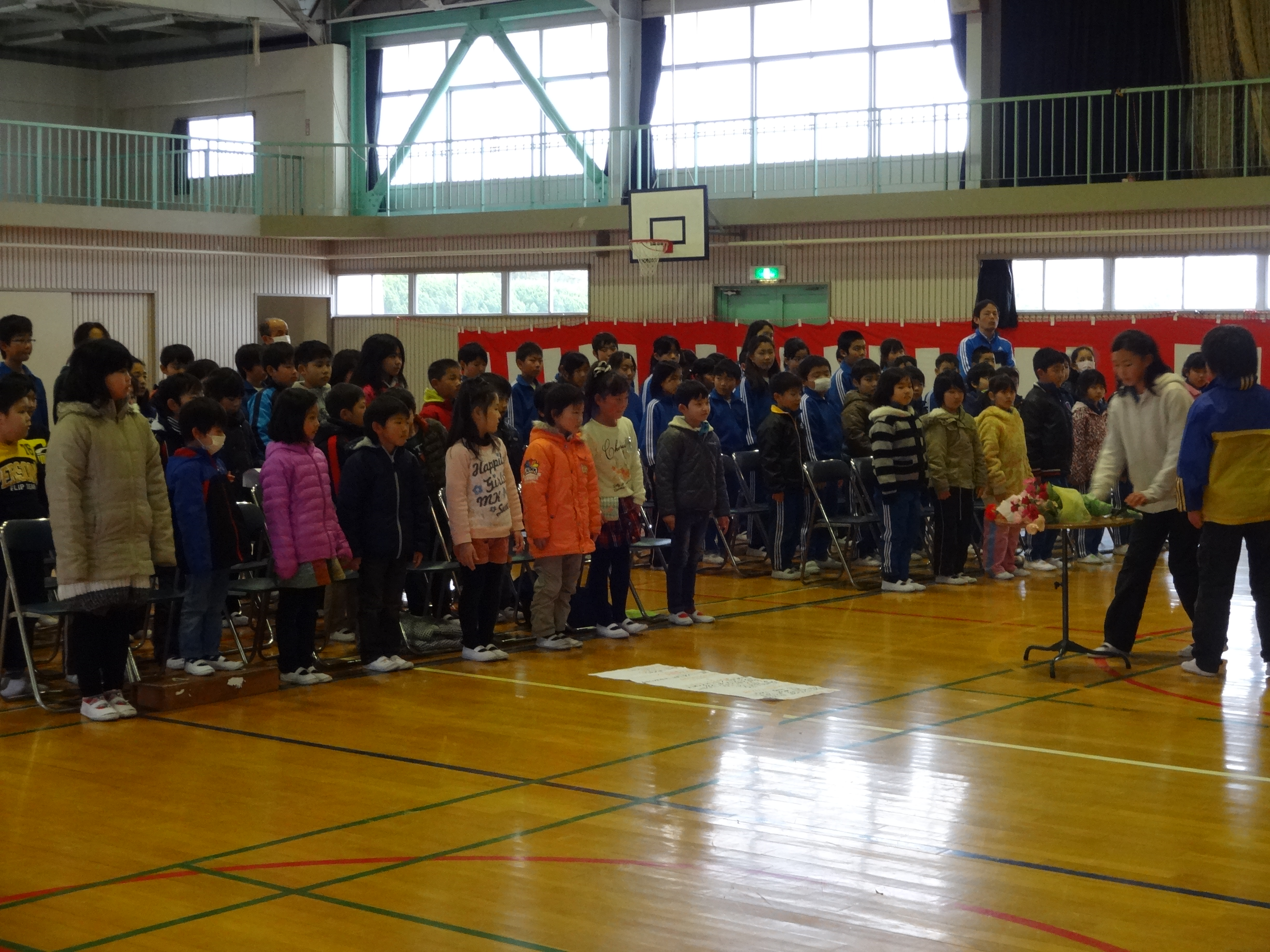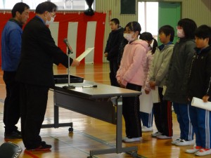 卒業式のように,修了式も,1年生から5年生まで,校長先生のお話をしっかり聞いていました。校長先生からは,「学習の面やスポーツ,体力の面,あいさつ運動や思いやり運動など,全校児童がしっかりと取り組んで,素晴らしかったです。これからもしっかりと夢・希望・目標をもって,がんばってください。」とお話がありました。また,生徒指導の先生からは,「ヘルメットをかぶって,交通安全をしましょう。」等春休みの過ごし方についてお話がありました。また,終了後,中西っ子賞やみんなに薦めたい1冊の本推進事業の県教育長賞,検定テスト1級合格者の表彰がありました。全校児童,いろいろな場面で輝いた1年でした。