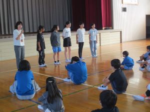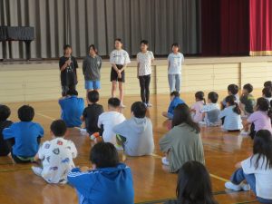 「スマイルぺこり」運動では、各専門委員会での取り組みを発表しました。ポスターを貼る、各学年にきちんと伝える、図書貸し出しの時に、笑顔であいさつをするなどがありました。続けていきましょう。