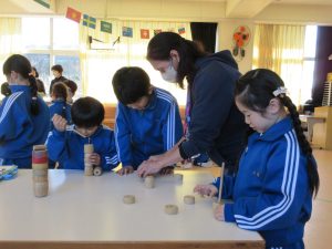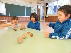 木曜日の1・2年生の「むかしあそび」の様子です。あたたかな、ワクワクする時間。