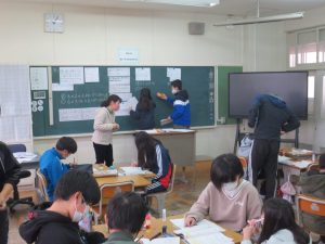 2つの式を比べると、答えがどちらも等しくなっていることから、円周と直径の関係を知り、また、計算のきまりによって等しくなることもわかりました。そして、直径上に並ぶ円をさらに増やしても、答えが同じになることに気づきました。