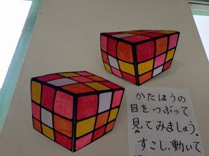 理科室前の廊下は、わくわくします。足を止めたくなる科学の世界。好奇心をくすぐられるしかけがいっぱいです。