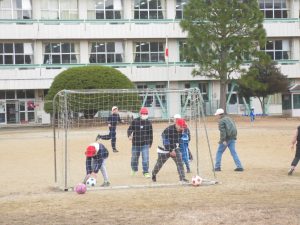 休み時間には、学年を超えて1つのボールを懸命に追っていました。