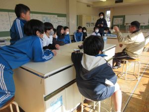 6年生の英語の授業で中野東小学校の6年生と交流しました。プレゼンと質問と答え。未知の状況にも対応できる力の育成をめざします。