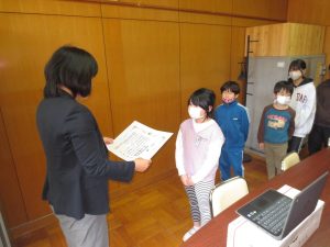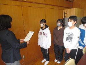 口の健康に関する図画・ポスターコンクール、児童生徒福祉作文、茨城県小中学校芸術祭小中学校美術展覧会、みんなにすすめたい一冊の本推進事業、鹿嶋市児童生徒作品展の表彰がありました。おめでとうございます。