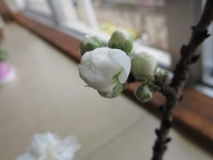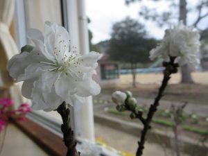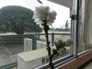 学校の鉢植えの桜も、きれいな花を咲かせました。
