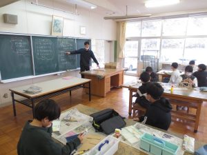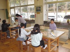 木の組み合わせを考えて、ボンドで接着し、色をぬっていきます。