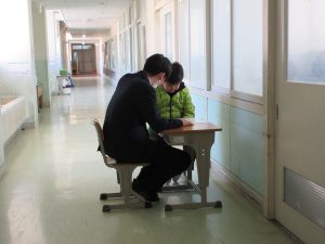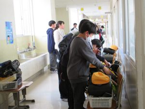 学活の後は、来年度に向けて、机の移動を行いました。進級して使う教室に、お引越しです。