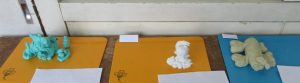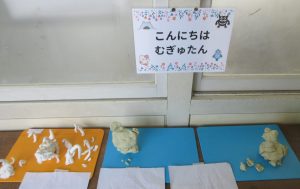 図工「こんにちは むぎゅたん」の時間に楽しい作品をたくさん作りました。細かなところまでこだわり、作品の説明をしてくれました。